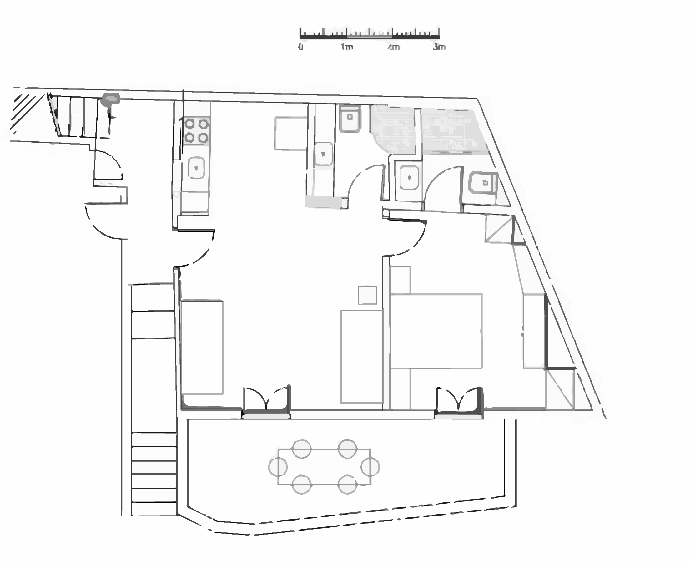 Moving on to Almyra, our newly renovated apartment, we offer it ready to host up to 5 people. Further, it consists of two big rooms, a fully equipped kitchen, two complete bathrooms that should guarantee convenience and practicality during your stay.