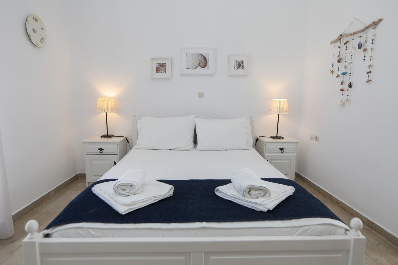 Oltre una spiaggia a dieci mnuti a piedi, ci sono numerose alter spiagge nelle vicinanze, come Kaladi’, Acherounes, Kalogeros e Diapori. Se andate un po’ piu’ lontano, troverete la bellissima spiaggia sabbiosa di Kalamitsa, che e’ veramente grande, pulita e calma. Vista la nostra profonda conoscenza del luogo, vi possimo indicare la spiaggia migliore per i vostri gusti. Se per caso avete una brca, non solo sarete capaci di guardala in ogni momento dal vostro balcone, ma potete approfittare della nostra esperienza marittima e aggiungere una escursione a posti accessibili solo via mare.